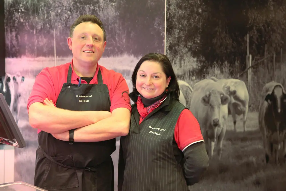 Il y a près de 25 ans, Chris et Geraldine ouvraient leur propre boucherie du haut de leur vingtaine d'années. A cette époque, ils ont non seulement posé les bases d'une entreprise prospère, mais Chris Michels a également joué un rôle de pionnier avec son assortiment végétarien. Il a réagi tout en transparence à la baisse de la consommation de viande et au nombre croissant de végétariens et de flexitariens. “Et l'avenir ne me fait pas peur. Il y aura toujours de la demande pour de la viande de qualité“, souligne Chris.