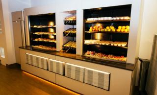 Klanten die een volledige maaltijd willen, komen bij het binnenkomen meteen uit op de buffetten, waar ze een keuze kunnen maken tussen de verschillende maaltijden. Op de twee vernieuwde computerschermen zien ze de verschillende keuzeopties afgebeeld met daarbij ook de allergenen aangeduid. Nadien schuif je meteen door naar de kassa of kun je jezelf bedienen aan de saladebar of de soeppotten die langs beide kanten bereikbaar zijn.